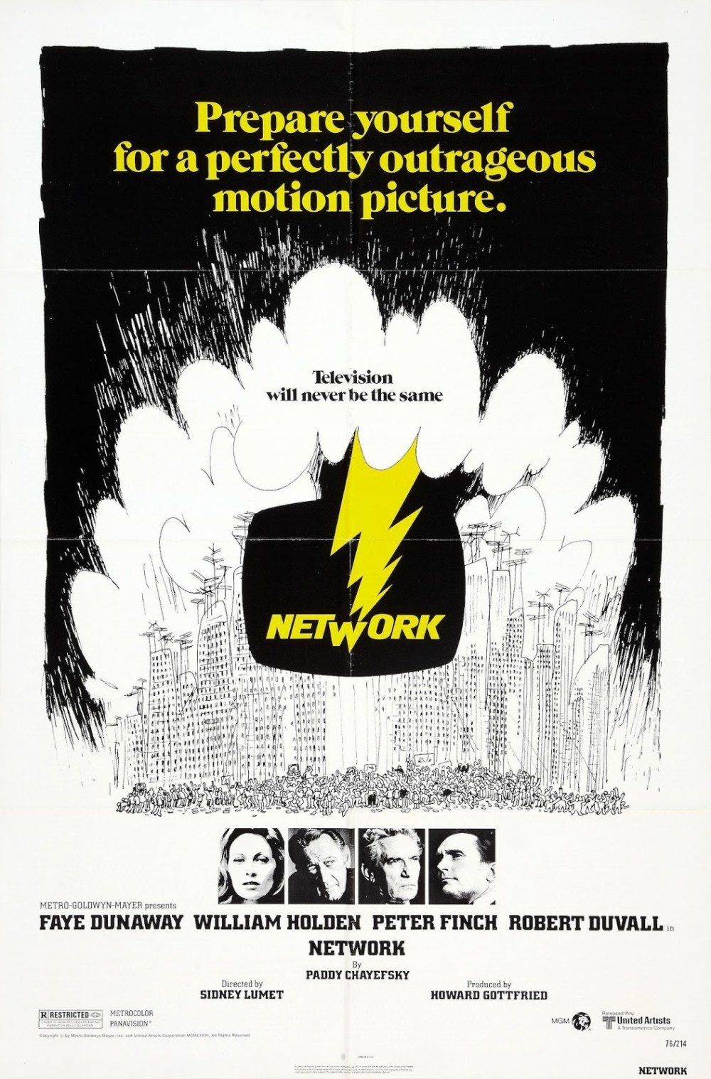 Yet, even beyond its central message, Network is a remarkable film. Peter Finch occupies one of the four central roles, and he is terrific as Beale, a man who is having a very public breakdown, someone who is seeking help from the widest possible audience, but not receiving anything by apathetic applause and cheers from an audience who cannot harness enough self-awareness to even give a second thought to the fact that the man they perceive as some deranged jester may actually be in need of some assistance. Faye Dunaway has an opposing character, playing the vicious Diana Christensen, who is happy to exploit absolutely anyone for the sake of getting viewers – her ruthless, direct approach to programming may make her a profoundly influential figure, but is also demonstrates that she is someone who is only feeding the media epidemic, whereby nothing other than money matters. Robert Duvall has a similar role as the money-obsessed head of the network who is more than willing to go to any lengths to protect his reputation, that of his corporation and the sanctity of their financial gain from the insanity of their newest and most popular televisual attraction. Its William Holden as Max Schumacher that is one of the few people that possess some semblance of sympathy in this film – yet he is equally as guilty as everyone else, because even he is confronted by a very simple choice – help the man you ardently insist is your oldest and closest friend when he is clearly seeking help, or continue to aid and abet his exploitation for the sake of selfish gain. It becomes very clear that every character in this film is motivated by something far deeper – a carnal, lustful desire for money, fame and influence, and when that starts to impinge on the way we approach truth and objectivity, then we certainly have a problem.