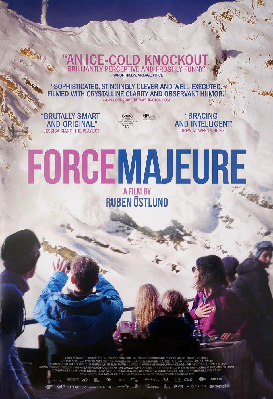 Tomas (Johannes Bah Kuhnke) and Ebba (Lisa Loven Kongsli) are a married Swedish couple that decide to take a short vacation in the French Alps, where they hope to spend a few days with their children (Clara Wettergren and Vincent Wettergren) skiing through the snow-white landscapes and appreciating the tranquillity of the gorgeous countryside. However, during lunch one afternoon, a controlled avalanche gives off the appearance of a perilous disaster, which causes many of the residents to panic – including Tomas, who is so overcome by fear, he abandons his family momentarily, saving himself without so much as a second thought for his wife and children, who would have been annihilated had it been a more dangerous occurrence. Suddenly, this seemingly perfect family is thrown into a state of unease, with the marriage between Tomas and Ebba being tested – his cowardice in the face of a disaster changes how his wife perceives him, and their children begin to worry that their parents are going to find themselves torn apart by this event, which is certainly a very real threat. This is most evident in the days following the event, where Ebba and Tomas begin to see their dynamic changing, and the trust they had in their marriage starting to erode, with the innumerable problems they have seemingly ignored for years having no choice but to resurface. Their friends and new acquaintances that weave through their vacation begin to find themselves squarely in the middle of what is very clearly a disintegrating relationship that appears to have no resolution in sight, particularly when both parties are insistent on dwelling on their own perceptions.